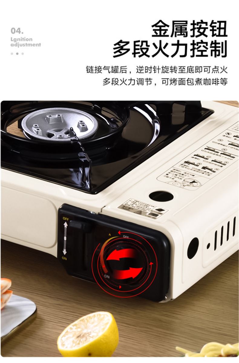 材質(zhì):鐵+麥飯石 顏色:米白 規(guī)格:卡式爐+烤盤 商品尺寸:26*34*8.2cm(卡式爐)、 烤盤(直徑28cm) 商品類型:卡式氣爐 商品凈重:2.2kg 1、小巧便攜,無煙烹飪; 2、過壓保護安全閥,放心使用; 3、節(jié)能省氣,強大火力; 4、多檔調(diào)節(jié),自由切換; 5、卡式爐手提盒包裝,攜帶方便;