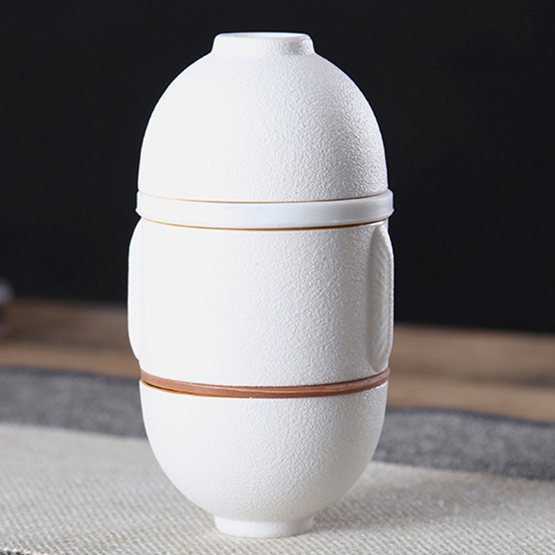 配制:1壺2杯 1茶隔 1旅行袋 規(guī)格:茶壺:上直徑6.8*H7cm 過濾茶隔:直徑5.6*H6.5cm 茶杯:直徑6.7cm*H4.2cm 材質(zhì):珍珠釉細(xì)陶 推薦說明:兩個(gè)杯子可與壺上下重疊組合,茶隔也放置其中。方便攜帶,簡單實(shí)用。高雅時(shí)尚。簡潔大方。表面有珍珠般細(xì)小顆粒,觸感舒適。