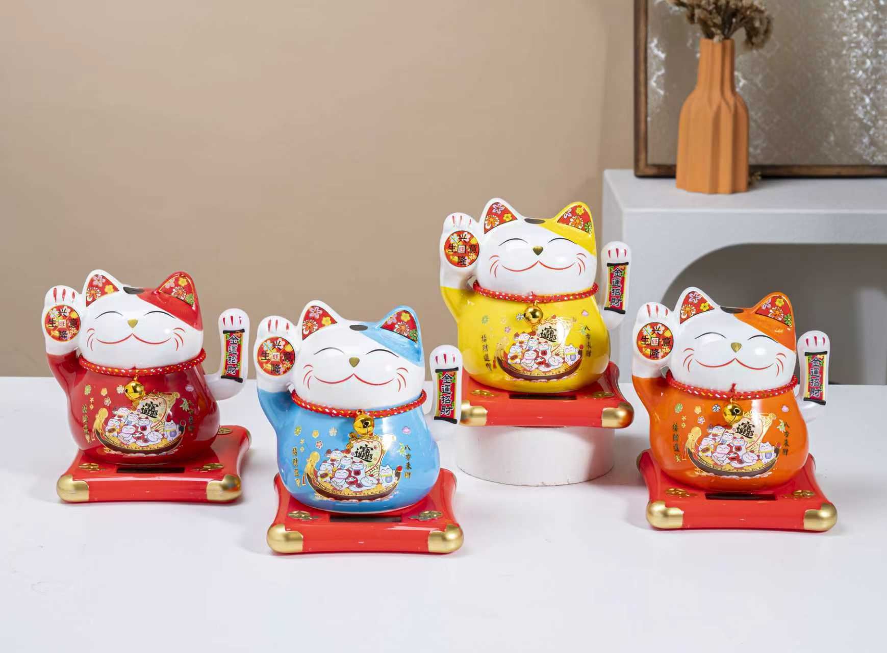太陽能招財貓來啦!色釉工藝打造出繽紛炫彩的外觀,紅、黃、藍等配色明艷喜慶,陶瓷質(zhì)感細膩光滑,擺在哪里都亮眼~太陽能驅(qū)動自動搖手,不用電池也能持續(xù)招福,省去頻繁換電的麻煩,懶人也能輕松擁有好財運!