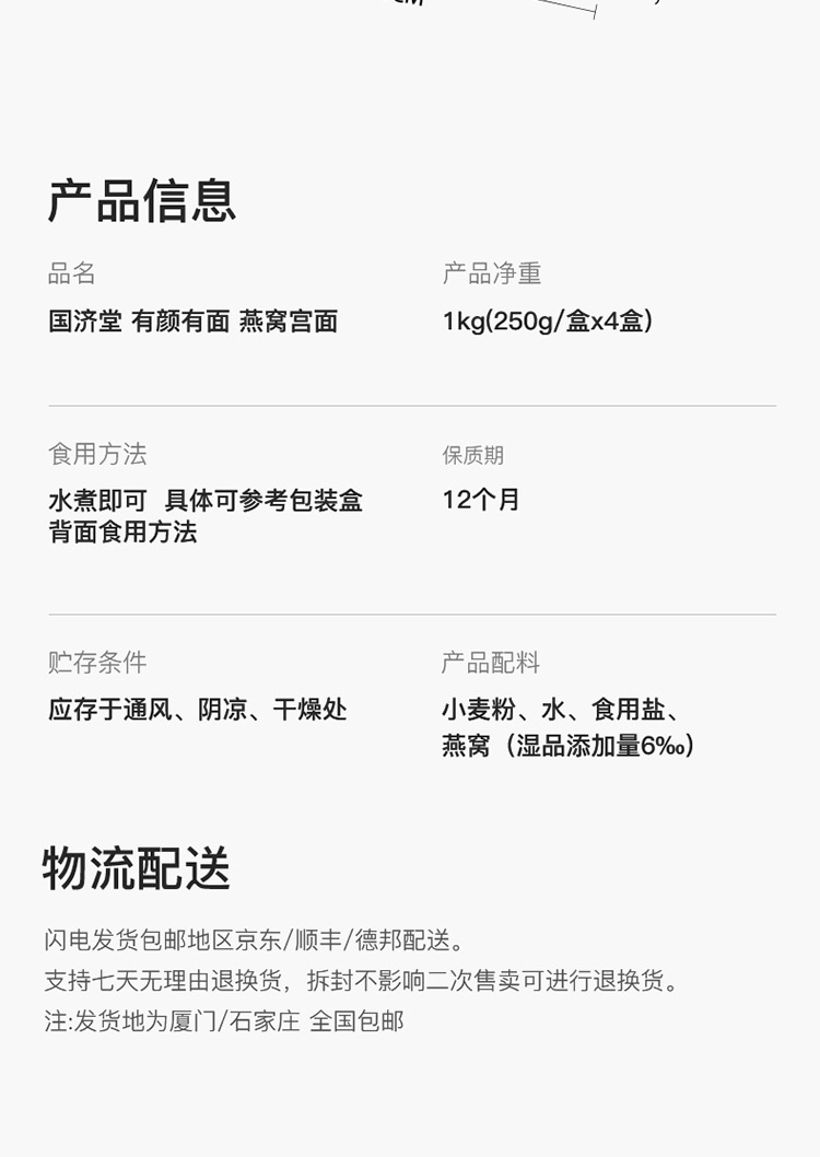 配料:小麥粉、水、食用鹽、燕窩(濕品添加量6‰)