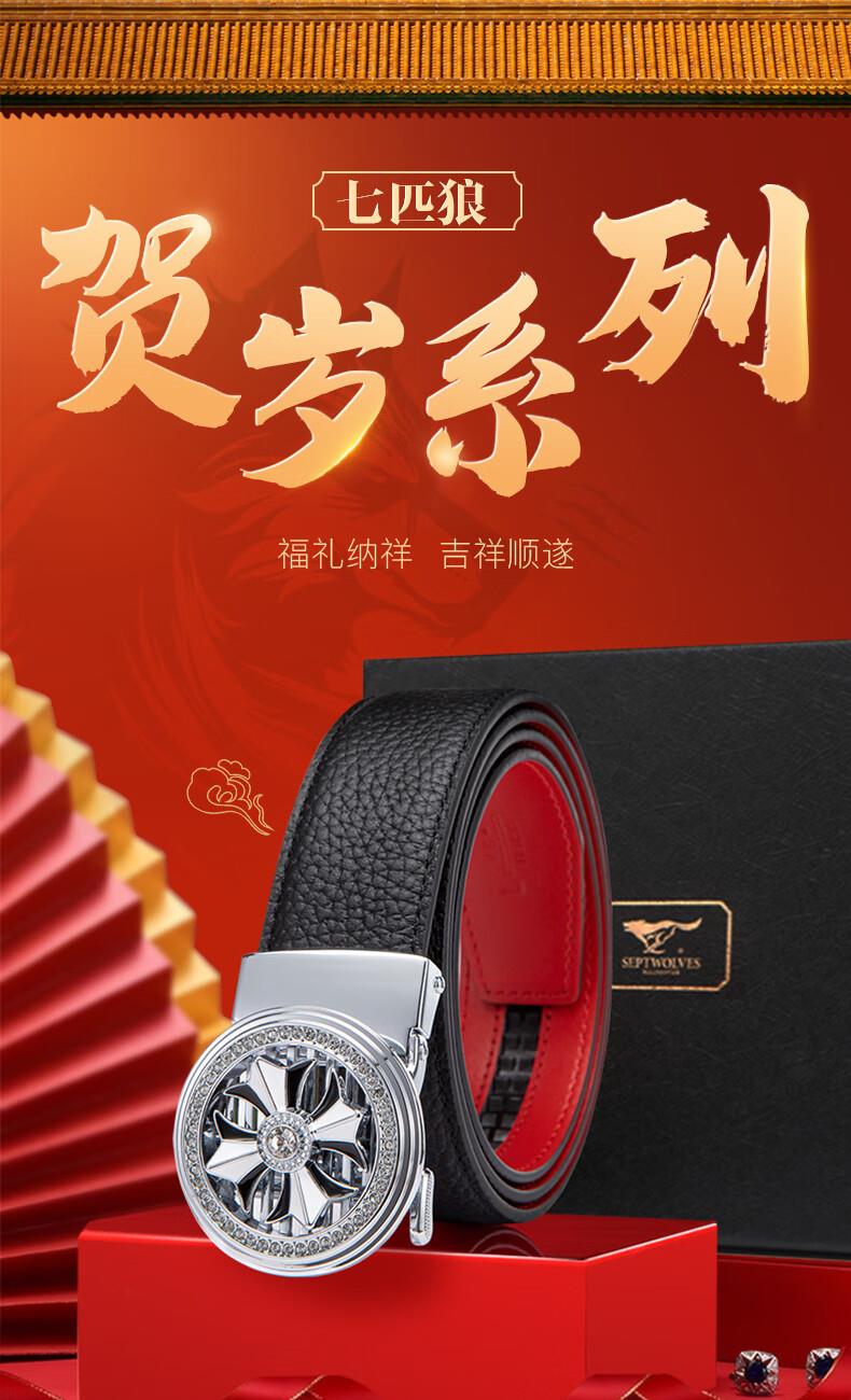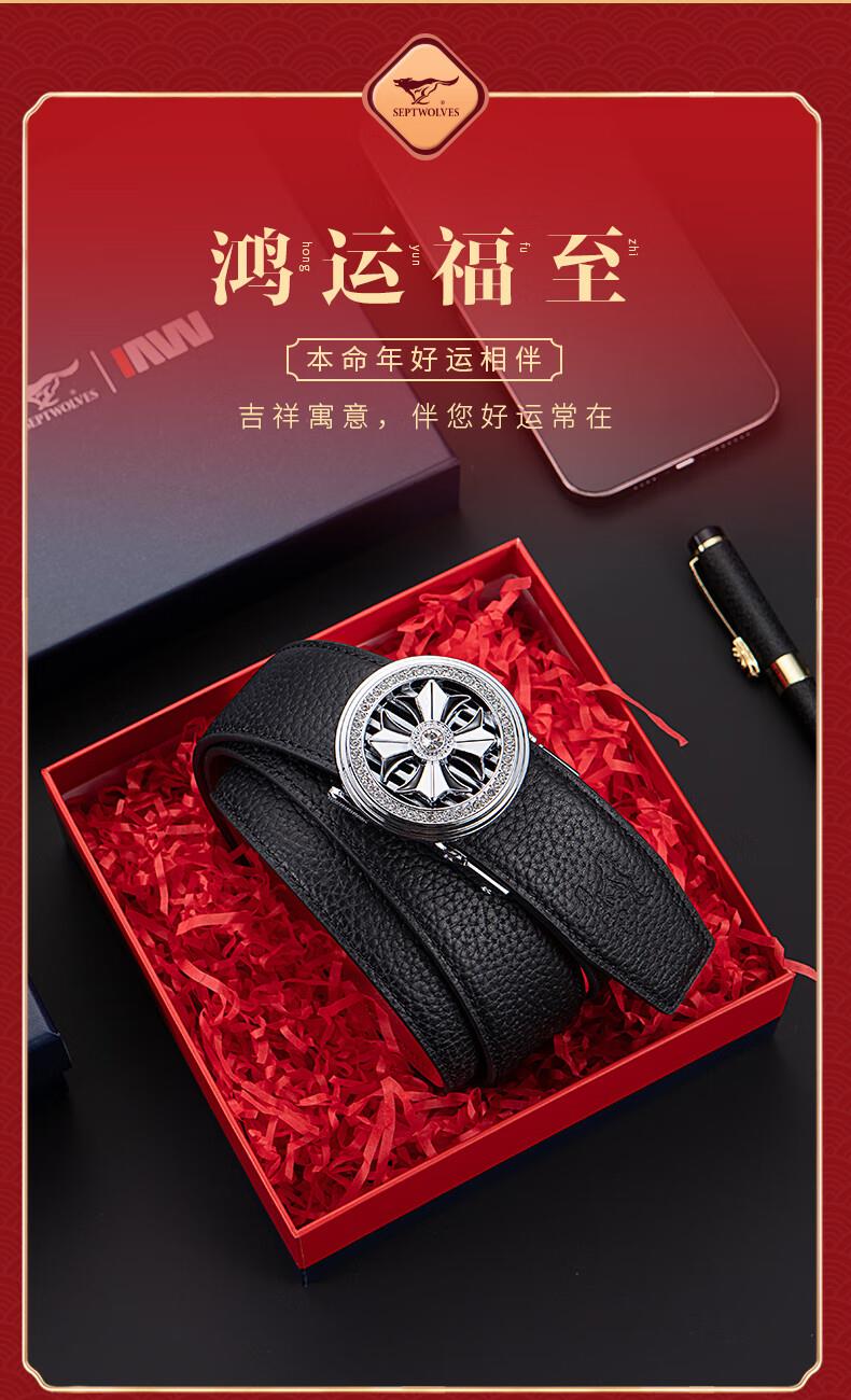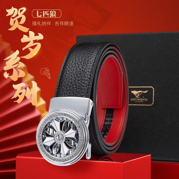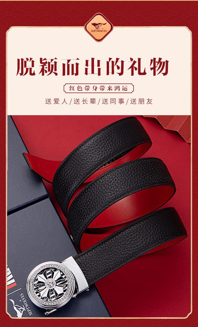 七匹狼男士皮帶自動(dòng)扣本命年紅腰帶A1238-3 禮品已成功加入PPT!
