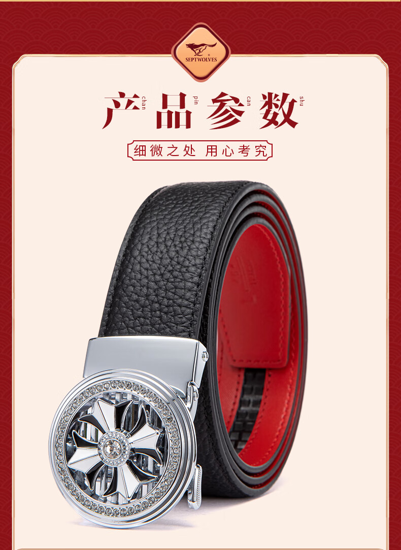 工藝:貼皮 帶扣:自動(dòng)扣 主體材質(zhì):頭層牛皮 帶扣材質(zhì):合金 風(fēng)格:通勤風(fēng) 商務(wù)風(fēng) 寬度:3.5CM 送愛人,送長(zhǎng)輩,送男士 時(shí)尚設(shè)計(jì)扣頭,經(jīng)典個(gè)性,簡(jiǎn)約百搭,磨砂背扣,材質(zhì)柔軟,手感舒適,經(jīng)典狼標(biāo)LOGO 代寫賀卡,傳遞心聲,精美禮盒,送禮佳品