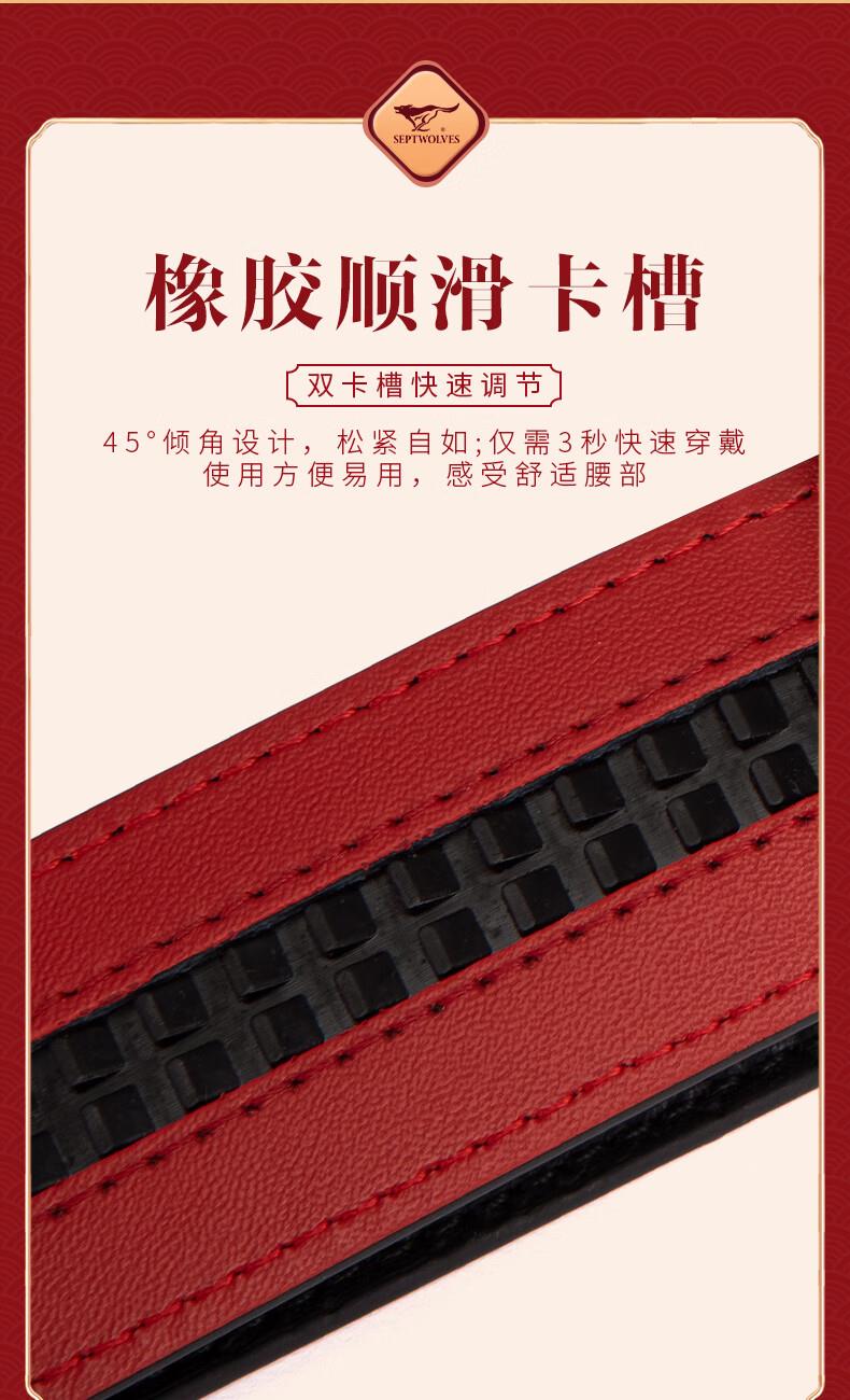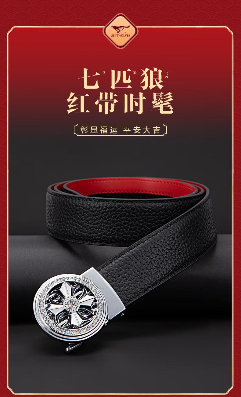 七匹狼男士皮帶自動(dòng)扣本命年紅腰帶A1238-3