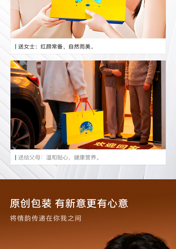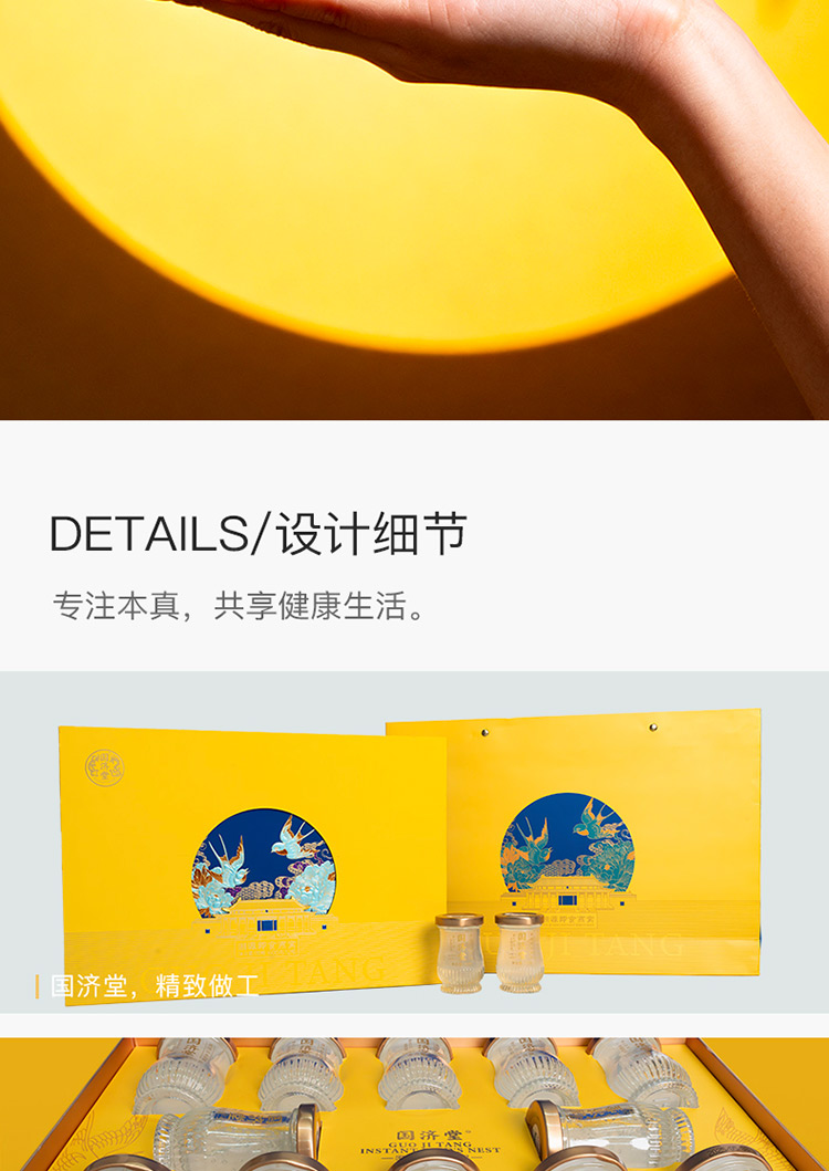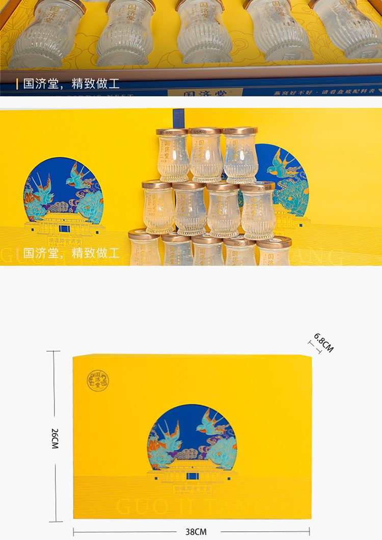 內(nèi)含12瓶溯源即食燕窩, 顏值與品質(zhì)同在,出手有面兒,堪稱送禮佳品。 規(guī)格:內(nèi)置12瓶溯源即食燕窩, 50克/瓶,固形物含量≥70% 配料:水、燕窩。 凈含量:600克 干燕窩投料≥2克 食用方法:開蓋即食(開瓶后未飲用完需冷藏) 保質(zhì)期:18個(gè)月 禮盒尺寸:38*26*6.8cm